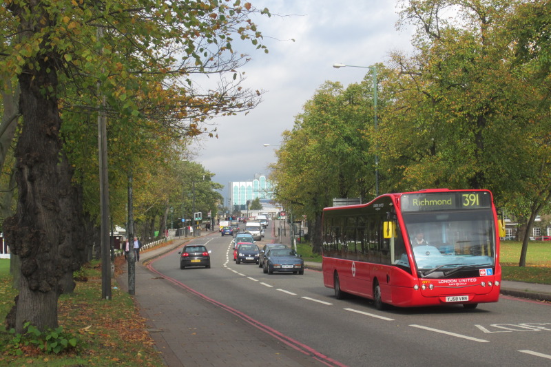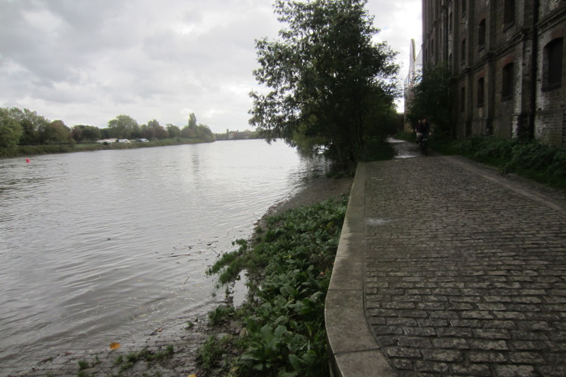 We were heading towards Kew Bridge, so the obvious thing might have been might have been to go over it. Instead we turned right and went under a railway with the intention of going along to Putney and crossing the river there.