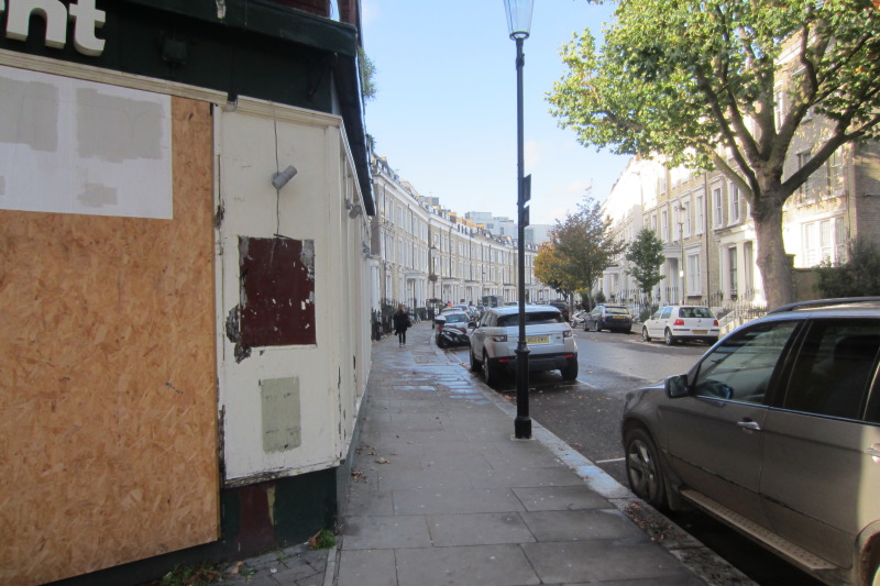… a residential street (and boarded-up pub) in the vicinity of Earl’s Court …